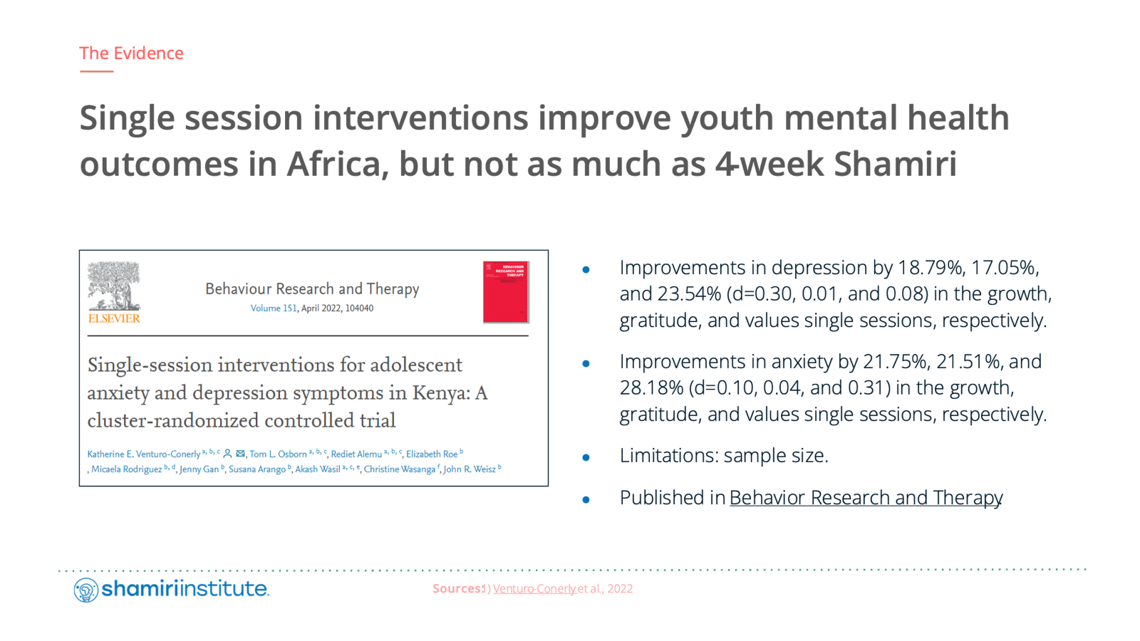At Shamiri Institute, we have been building the foundations of human capital development in our youth through our model and interventions. By impacting our nation’s youth at the age of onset of mental health disorders, we can be the starting point for transforming our nation toward this Singaporean dream.