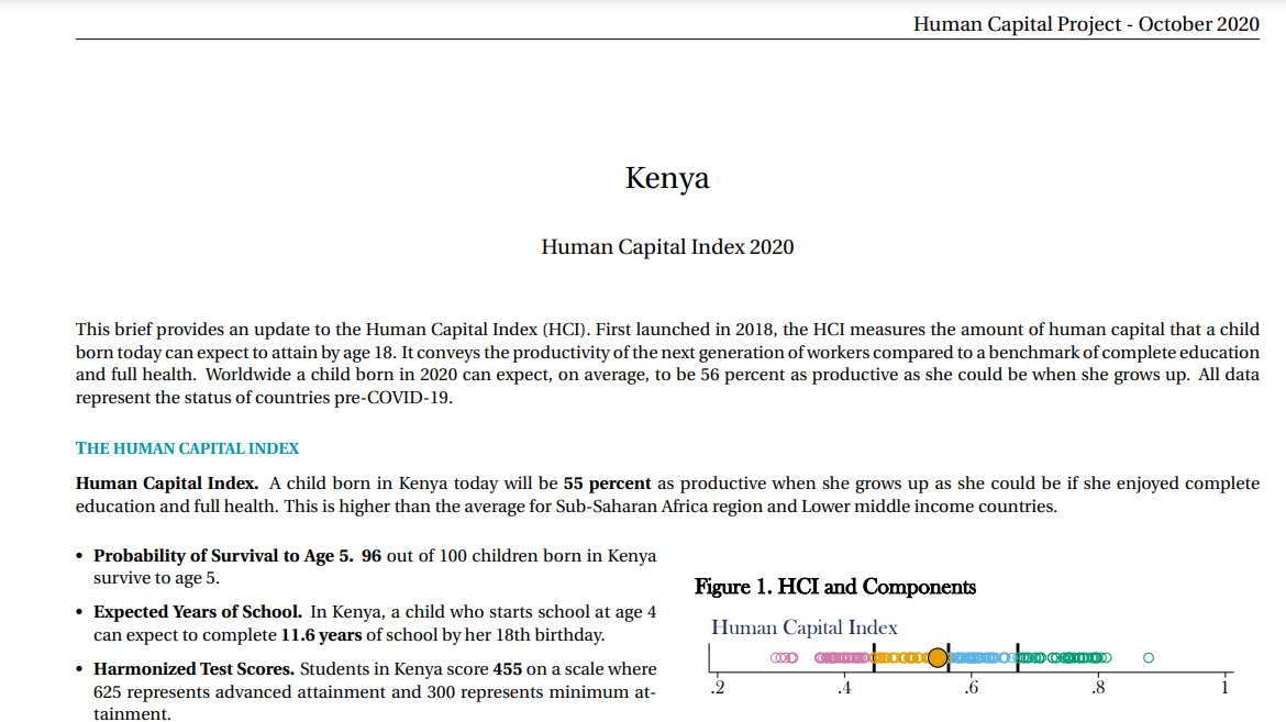 As depicted in the images above, Kenya’s human capital index stands at 55%, a figure that, while higher than the average for Sub-Saharan Africa and other low- and middle-income countries (LMICs), remains significantly lower than that of nations like Singapore, which boasts an impressive 88%. Far from being disheartening, this disparity should be viewed as a powerful testament to Kenya’s immense potential. Despite the current gap, Kenya’s standing ahead of regional peers and the global average for LMICs positions it uniquely to make substantial strides in human capital development.